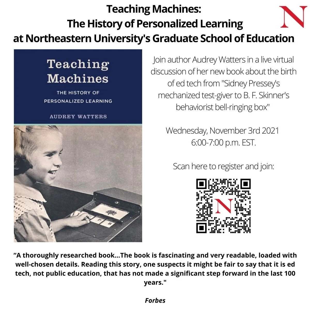 Join us in a conversation with Audrey Watters, author of the book Tressie McMillan Cottom calls "a vital cultural history of our desire for a technical solution to the fundamentally social problem of how to make education work for all families".
